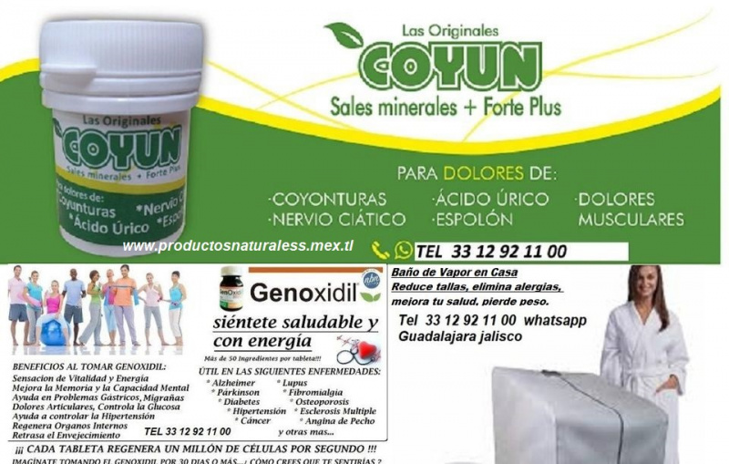 Lutevid, Celda Ionizadora ,Genoxidil, Colageno hidrolizado,Varikosette crema, Crema de Goji, Las originales coyun, Baño de vapor portatil, Crema Joy Pretty Para ojeras, Acido Hialuronico, Melagenina Plus.